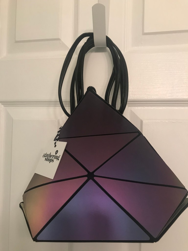 I could not leave without making a purchase. I chose the 4Way Bag in luminous. Whatever light you catch changes the color of the bag. It is made by junell5 (retail $65.00) The bag reminds me of origami! There are 4 ways to snap the bag into shape and the straps can be made long or short. Nothing like having fun with a new purchase. The following are 3 of the four shapes. Tote, tote with flat bottom, diamond, and there is a cube shape too. Make a point of stopping by The Gathering Shops. Maybe one will open soon in a mall near you.