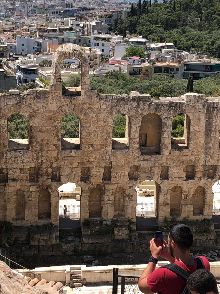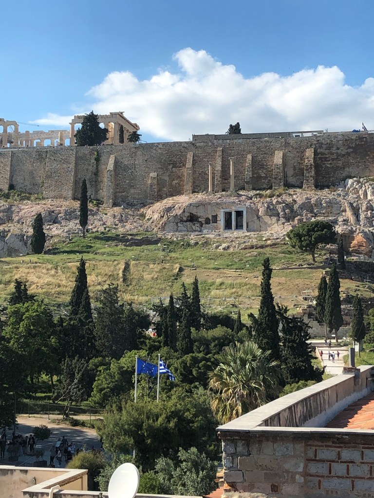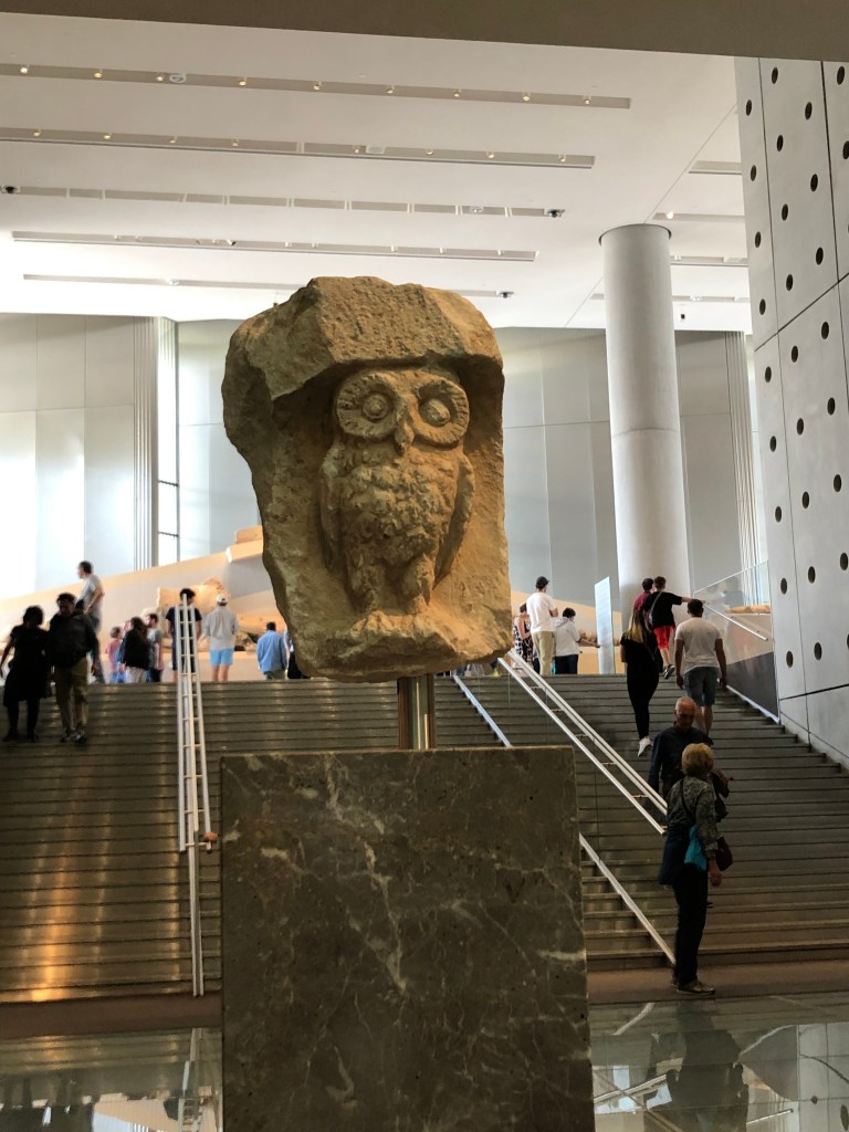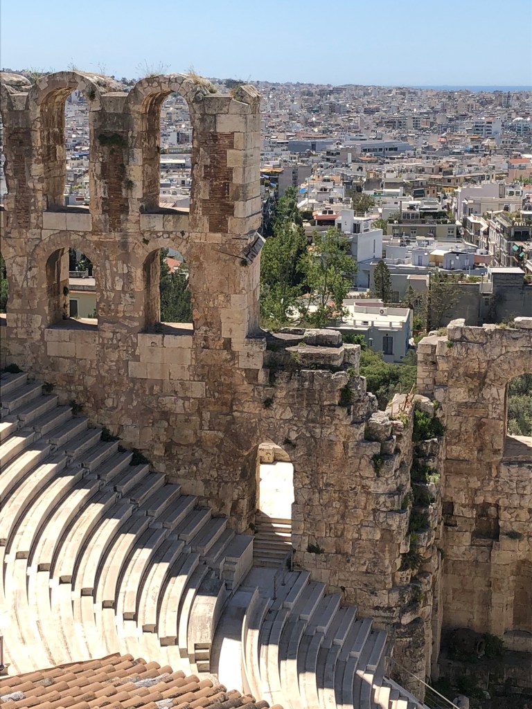 Athens was a 2 day stop. Day 1 Jimmie had arranged a private tour for us so that we could see as much as we could at our own pace. The Acropolis is a rocky hill in the center of Athens! In 1975 the Greek government began an effort to restore the Parthenon and Acropolis structures. The really important and fragile sculptures were transferred to the Acropolis Museum. The Parthenon is a former temple on the Athenian Acropolis dedicated to the goddess Athena. Herodes Theatre is on the way up the slopes to the Parthenon. This walk is not for anyone with knee or ankle problems. The climb up is steep and slick rocks. This could be how the expression “you’re on a slippery slope” started!! The Acropolis museum was built to house every artifact found on the rock and surrounding slopes. The museum is incredible. The top floor was designed on the “same axis as the Parthenon and has the identical cardinal orientation ” (Wikipedia). In other words, it has the same dimensions to display the entire frieze of the temple. With all of the windows and the elevation you can glance out and see the acropolis with the Parthenon in plain view. There are many sculptures on display. This was quite a day and ended with my decade changing birthday celebration! As I said to friends there is something to be said for celebrating a big birthday in an ancient city…EVERYTHING is older than I am!!