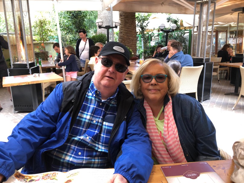 Crete Greece. This stop was supposed to be Santorini, but the seas and winds were not cooperating. Our captain was able to get us to Crete for the day. We docked at Souda Port Chania and went into town to find a place for lunch and go though the market. Had a delicious lunch and walked around. It was May but there was still snow on the mountains. The highest mountain on Crete is Mount Ida. Legend has it that on its slopes in one of the caves Zeus was born.