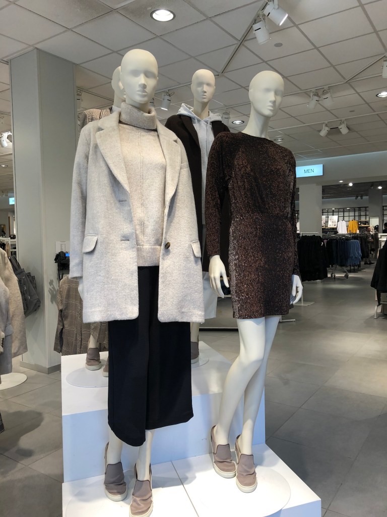 Sweaters are, of course, guaranteed purchases this time of the year. There is a lot of variety in sleeves. Ballooning sleeves are very popular. Fair isle patterns are again popular and look very fresh when the pattern is a rounded yoke that continues over the shoulder and upper arm.