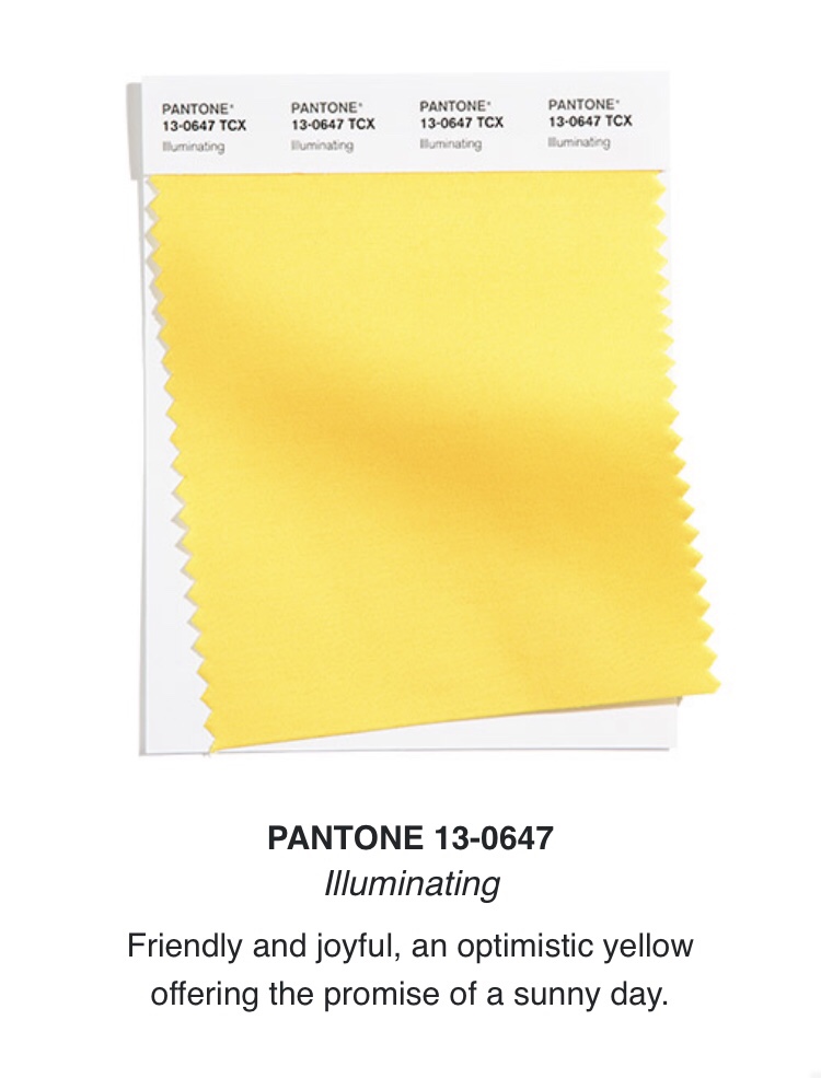 I have always felt that color communicates a lot about who you are. Whether you wear it or decorate with it you are making a statement. 2020 was certainly a gray period. But, gray is the perfect neutral. It is serious, strong, stable, practical. If you only used the color gray, it would say you are neutral about life. For months we have all been in a neutral corner. And now along comes Illuminating. It is warm. It is bright. It is the light at the end of the tunnel. Let the sunshine in! Imagine a bright sunshiny day! Optimism abounds and you start to feel “up”. And we all agree, we need to feel “up” again. So, add some Illuminating to your wardrobe and your home and balance it against Ultimate Gray.