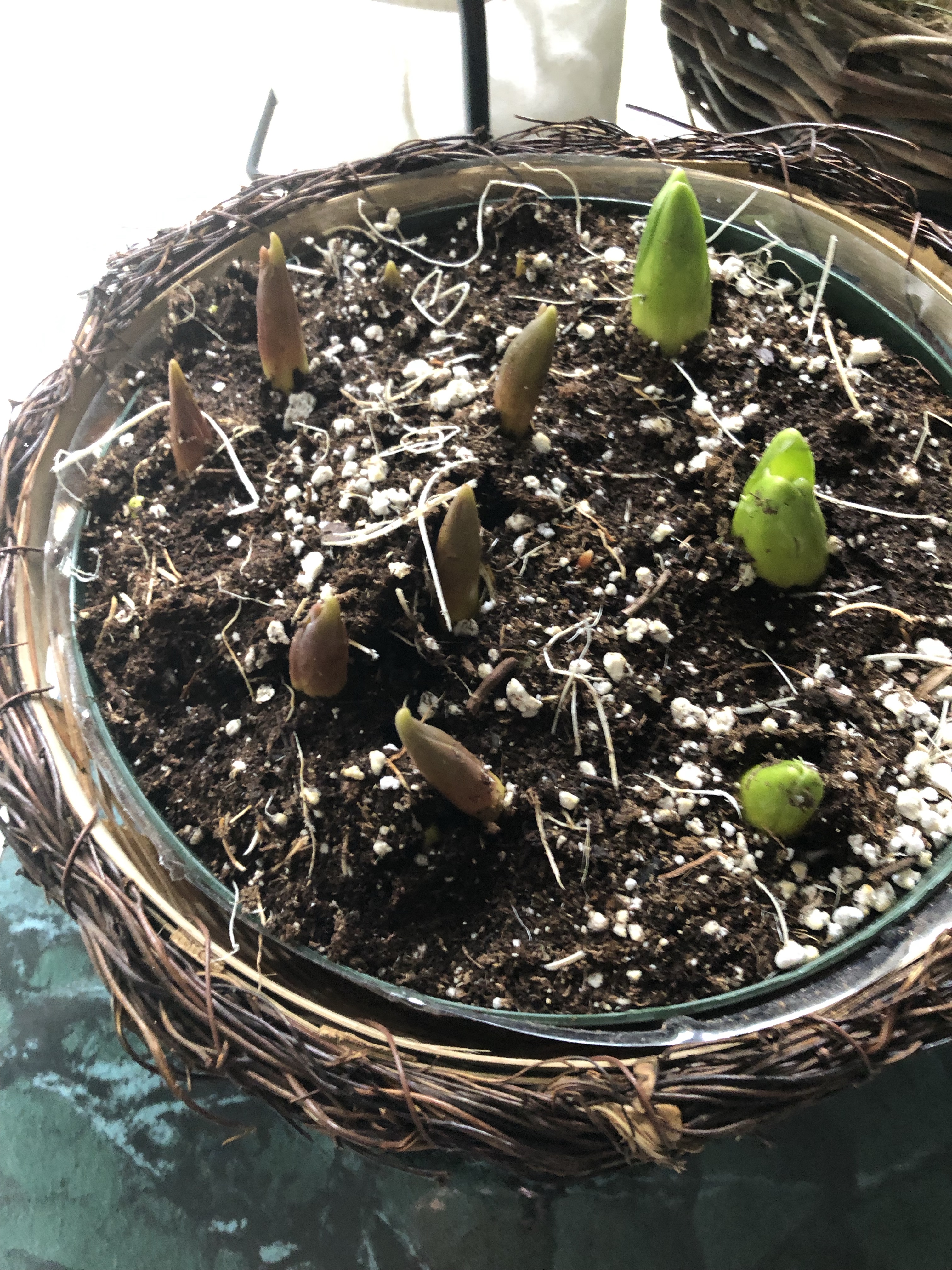 My nephew Dennis and Donna sent me a gift from Breck”s Gifts. It is a bulb garden. It has been a source of joy since I opened the box.