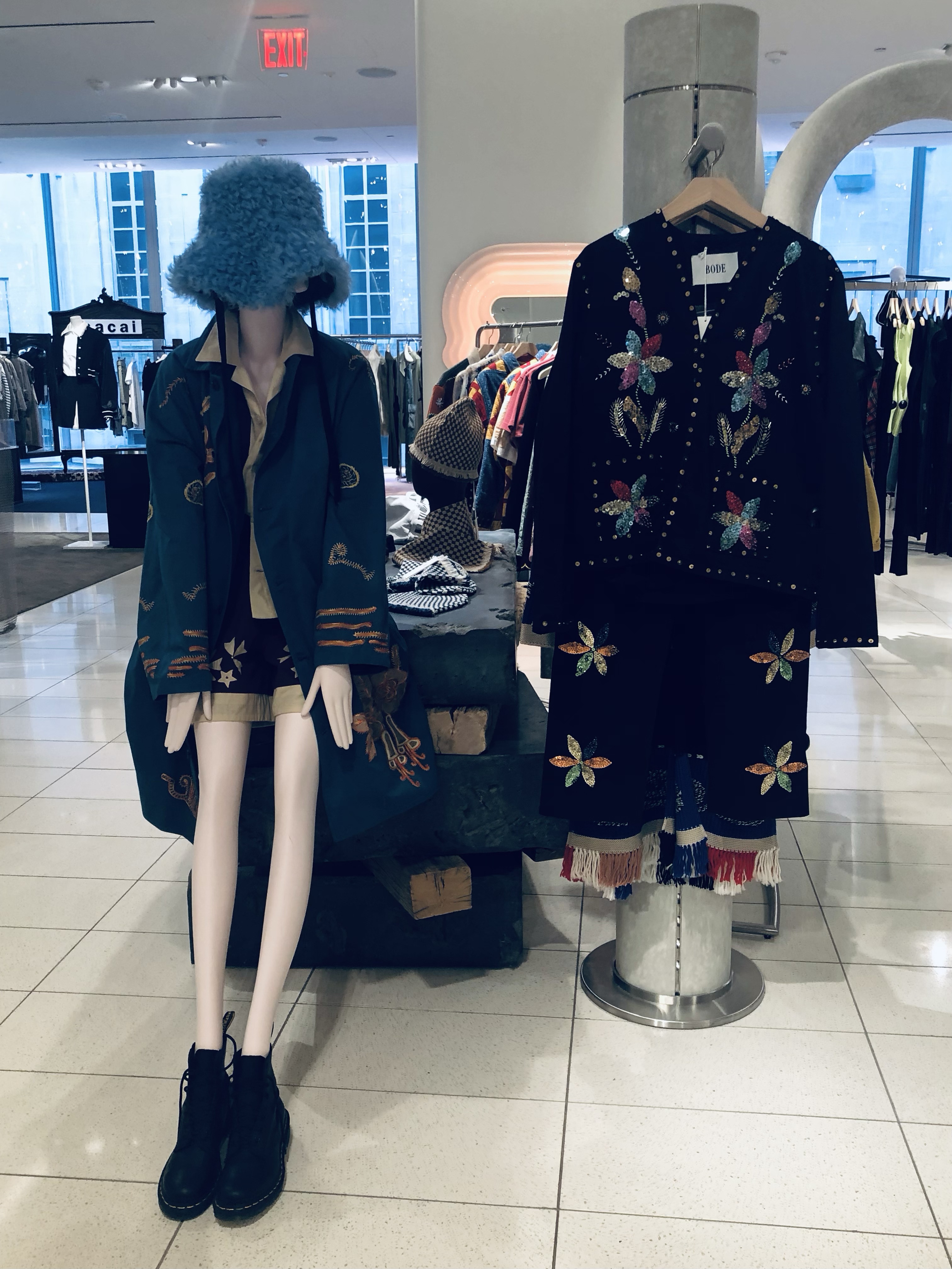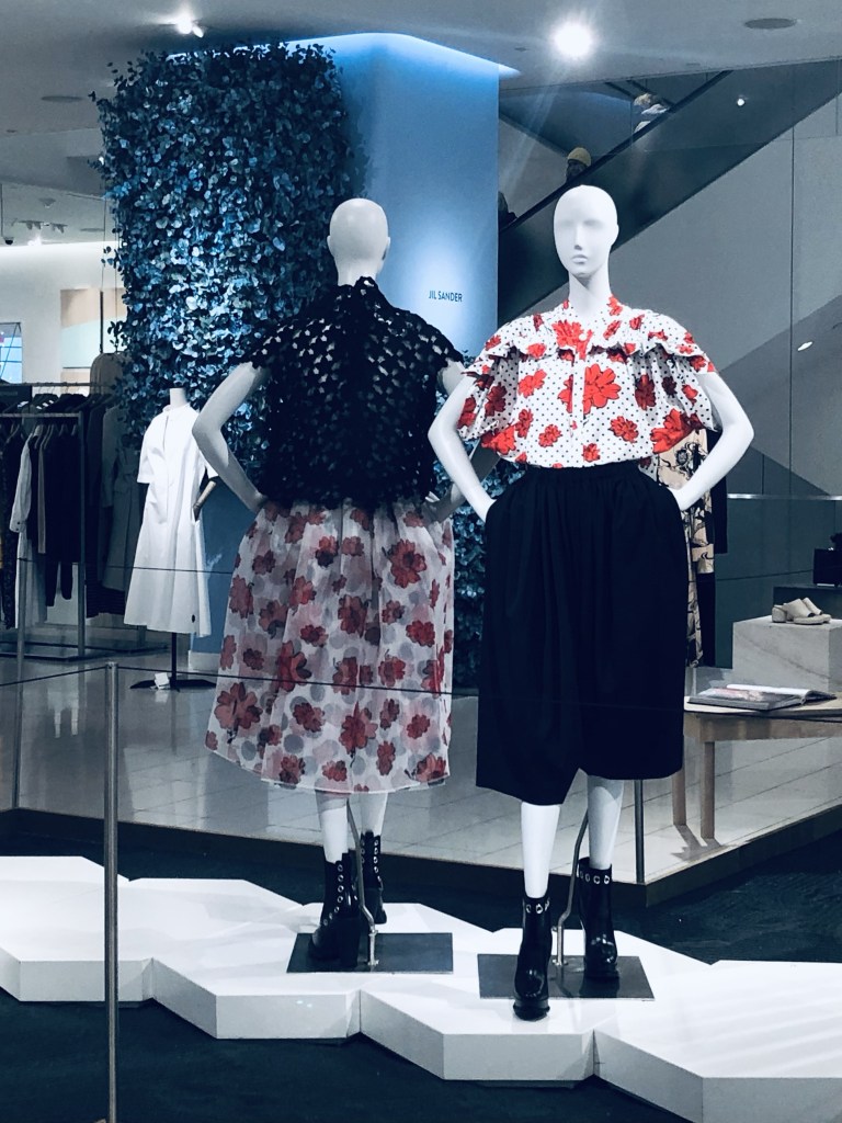I was in New York City last weekend and stopped at Nordstom’s (AKA the Mother Ship) on 57th street. I just had to share their displays with you. I know you are saying “Really! Who will be wearing that?” There will be several people “wearing that” but the purpose of my sharing it is so that you are aware of all of the fun and creative ways to dress. Let your imagination run wild. See what looks you might want to create with stuff you already own or can interpret with some new items. Find your own comfort level. Fashion is meant to be enjoyed. Give it a try!!!