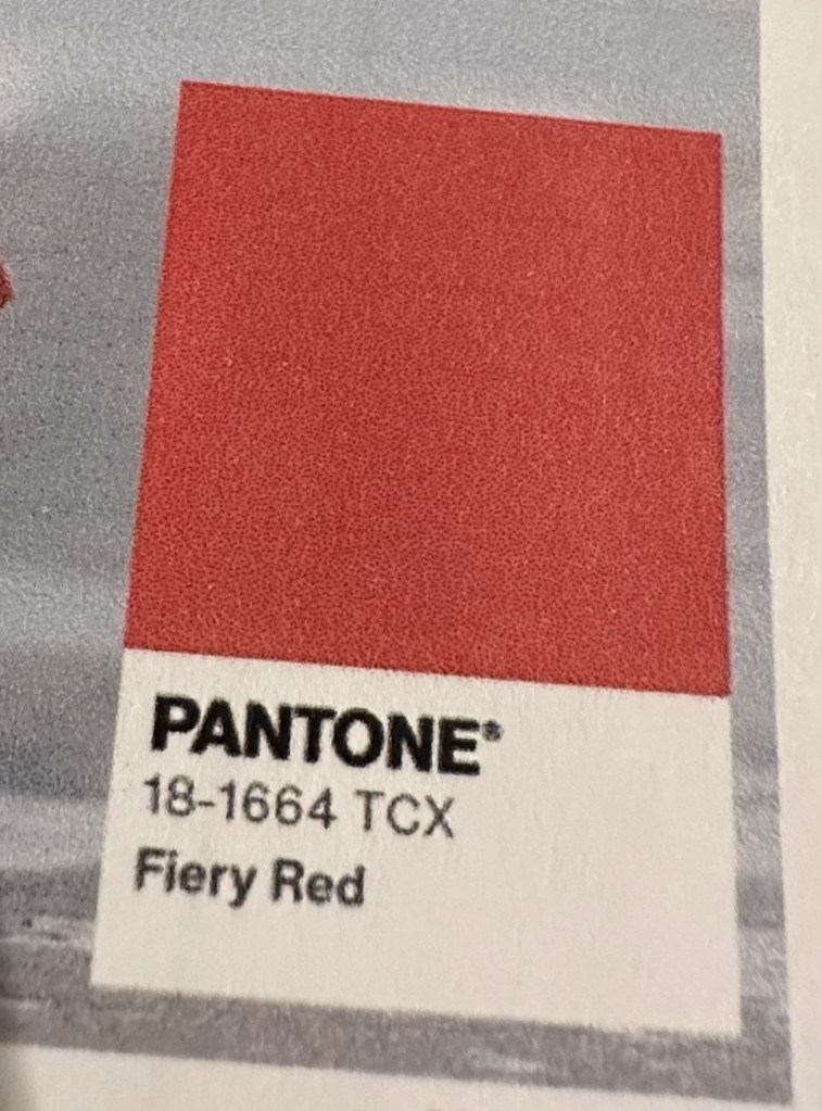 Fiery Red is a bold, cherry inspired color that is expected to be very big for fall. Since this is an intense color, it pairs well with all neutrals especially brown or beige or white.