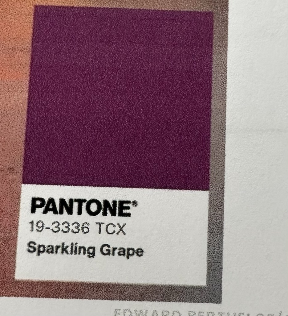 Sparkling Grape is in between violet and deep plum. This is good with gray as well as other shades of purple.